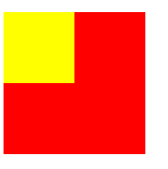 兩個層都設置為100寬 100高。第一個層背景色為紅色,下邊界(margin-bottom)為20 px.。第一個層背景色為黃色,上邊界(margin-top)為30 px.。那么這兩個層之間的距離是不是20+30=50px呢?其實不然,他們之間的距離應是他們邊界中最大一個值,也就是30px。效果如圖: