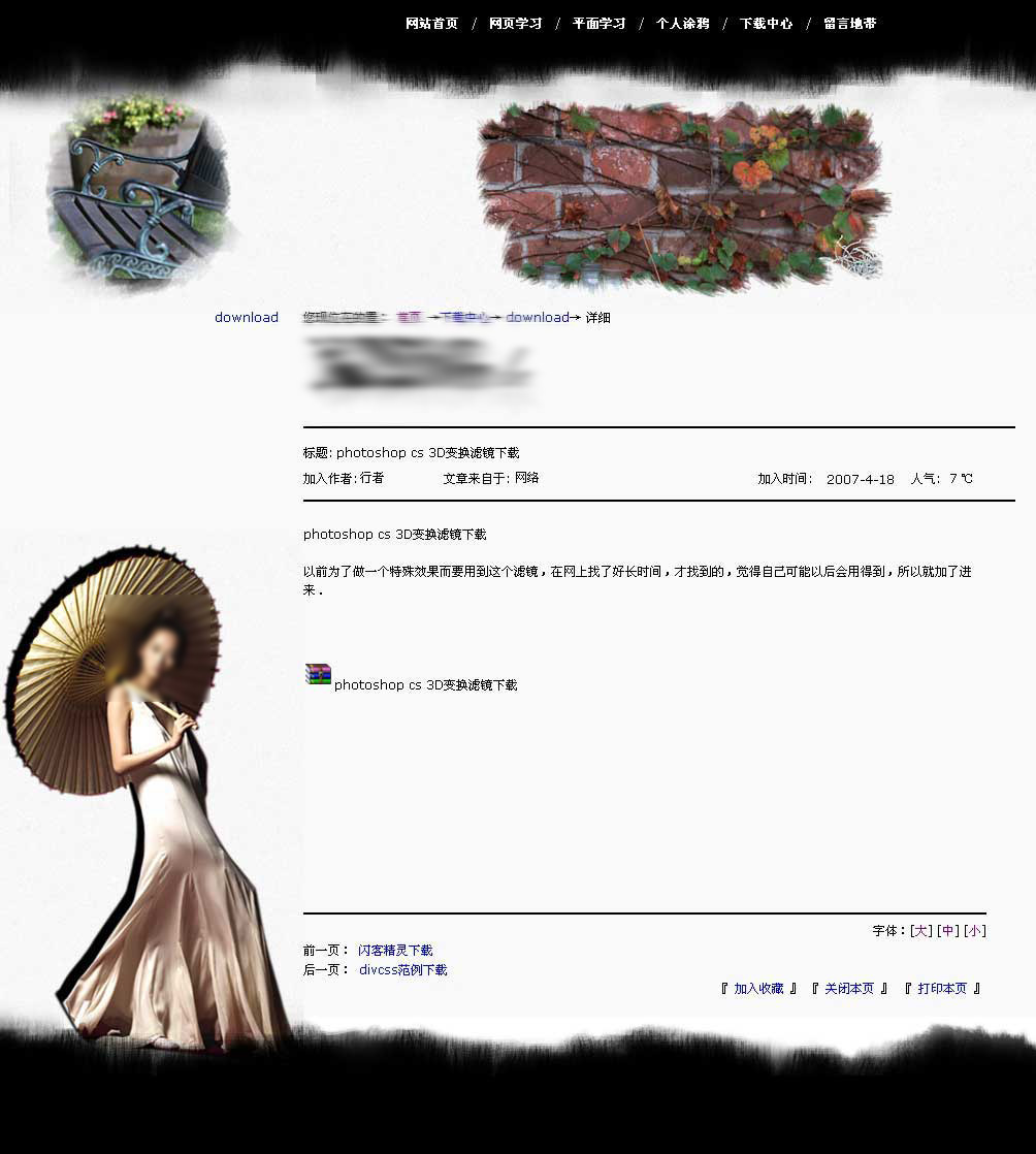這個是網站是我很久以前做的,06年的時候,后來改成別的了,這是一開始學習做網頁的時候做的,這幾天整理東西,看到,然后就整理下,放到網上。也讓它發出最后的光彩吧。