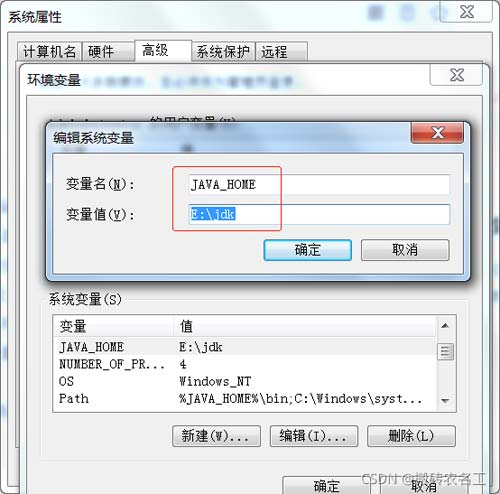新建變量名 JAVA_HOME,變量值 E:\jdk