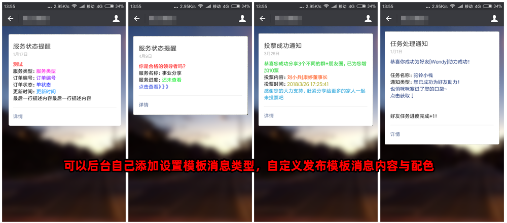 可自定義推送模板消息功能,不限制每天推送次數(shù)